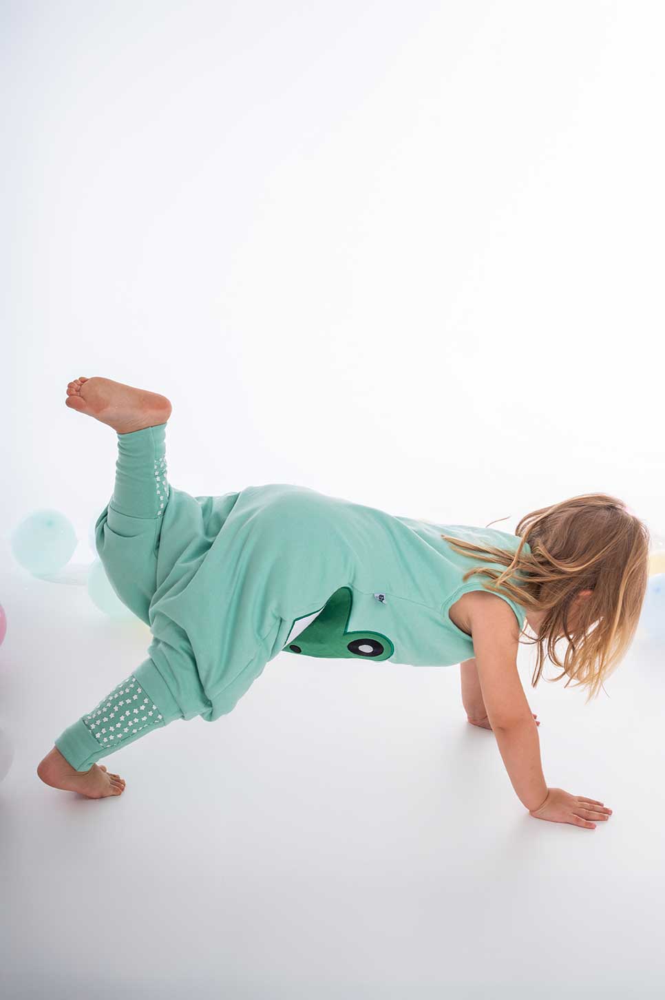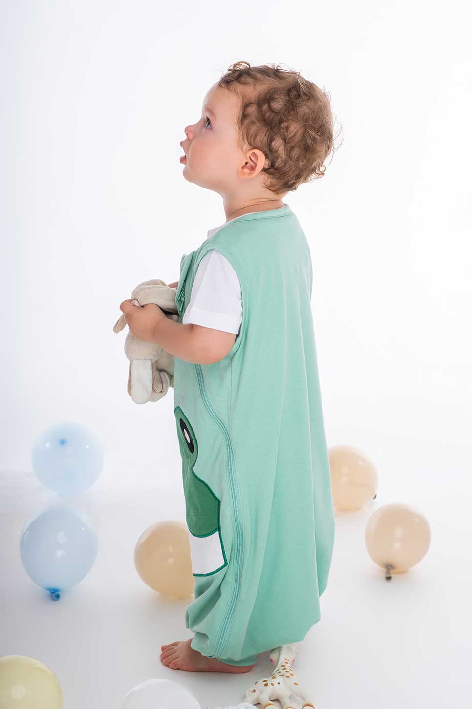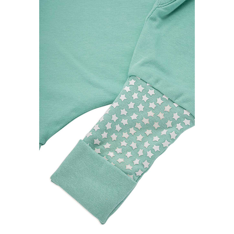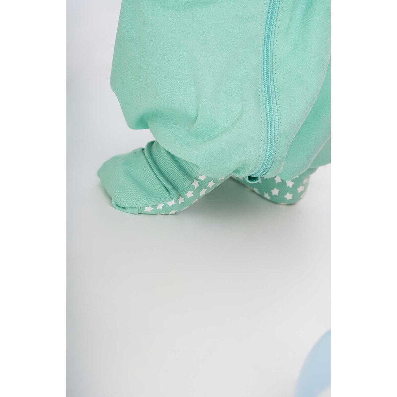 Είναι και αυτός φτιαγμένος από πιστοποιημένο οργανικό βαμβάκι (80% GOTS certified organic cotton και 20% BCI cotton), με αντιολισθητικές γκέτες που κλείνουν για να παίζει το παιδί και όταν κοιμάται να γίνονται καλτσούλα ή να αφήνουν το πέλμα έξω.