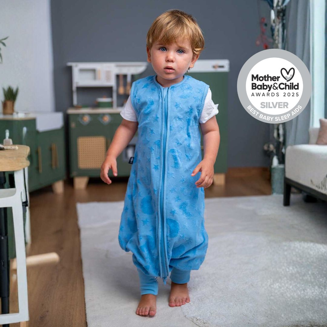 For very active little ones who stand up during the night or for babies who fall asleep while playing and you don't want to wake thme up by changing them into a sleeping bag, we hve created the BlissJump!