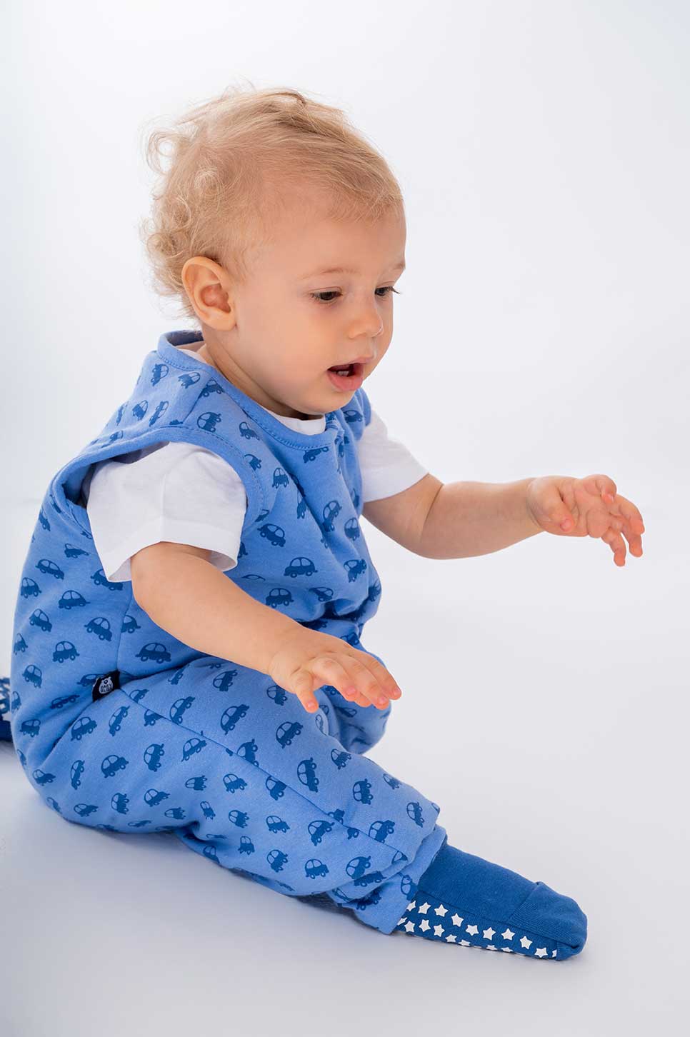 Είναι και αυτός φτιαγμένος από πιστοποιημένο οργανικό βαμβάκι (80% GOTS certified organic cotton και 20% BCI cotton), με αντιολισθητικές γκέτες που κλείνουν για να παίζει το παιδί και όταν κοιμάται να γίνονται καλτσούλα ή να αφήνουν το πέλμα έξω.